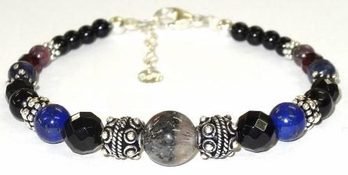 スーパーセブンとシルバー、そしてカットの入ったブラックオニキス、ラピスラズリ…センター部分を占める配列の美しい事!おすすめ品です!
